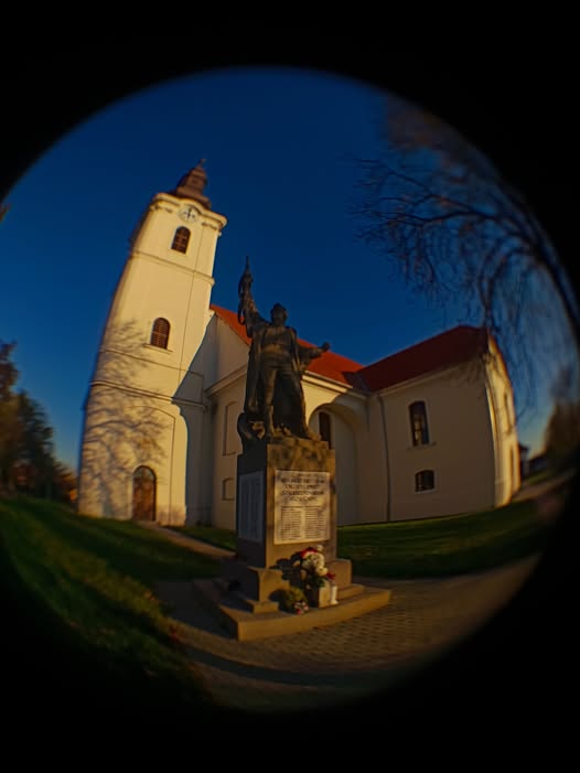 A templom közelében található az I. világháborús emlékmű is: kőalapzaton álló, katonaalakot ábrázoló szobor, az alapzaton névtáblákkal – kifejezetten „hősök emlékezetére” komponált, ünnepi/megállító jellegű emlékmű.